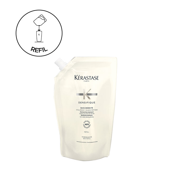 Para prolongar sua experiência com o shampoo para cabelos finos Bain Densité e promover um consumo consciente, agora você pode adquirir o refil de 500ml. Sua fórmula desenvolvida para fibras capilares com perda de densidade. O Shampoo Kérastase Bain Densité fortalece o cabelo na fibra e desperta os folículos adormecidos para dar mais textura, substância e resistência ao cabelo. A fibra e a elasticidade são restauradas para que o cabelo pareça visivelmente mais encorpado e com aparência mais espessa.